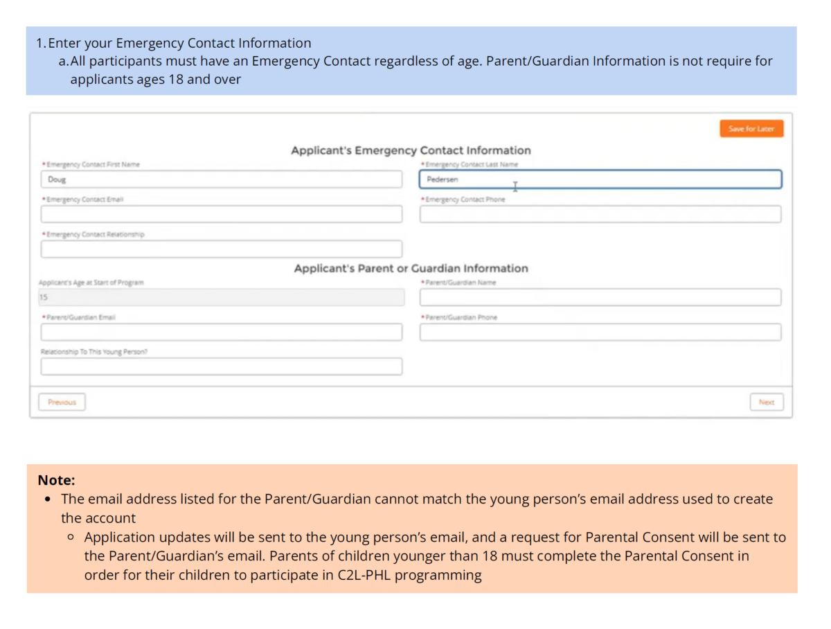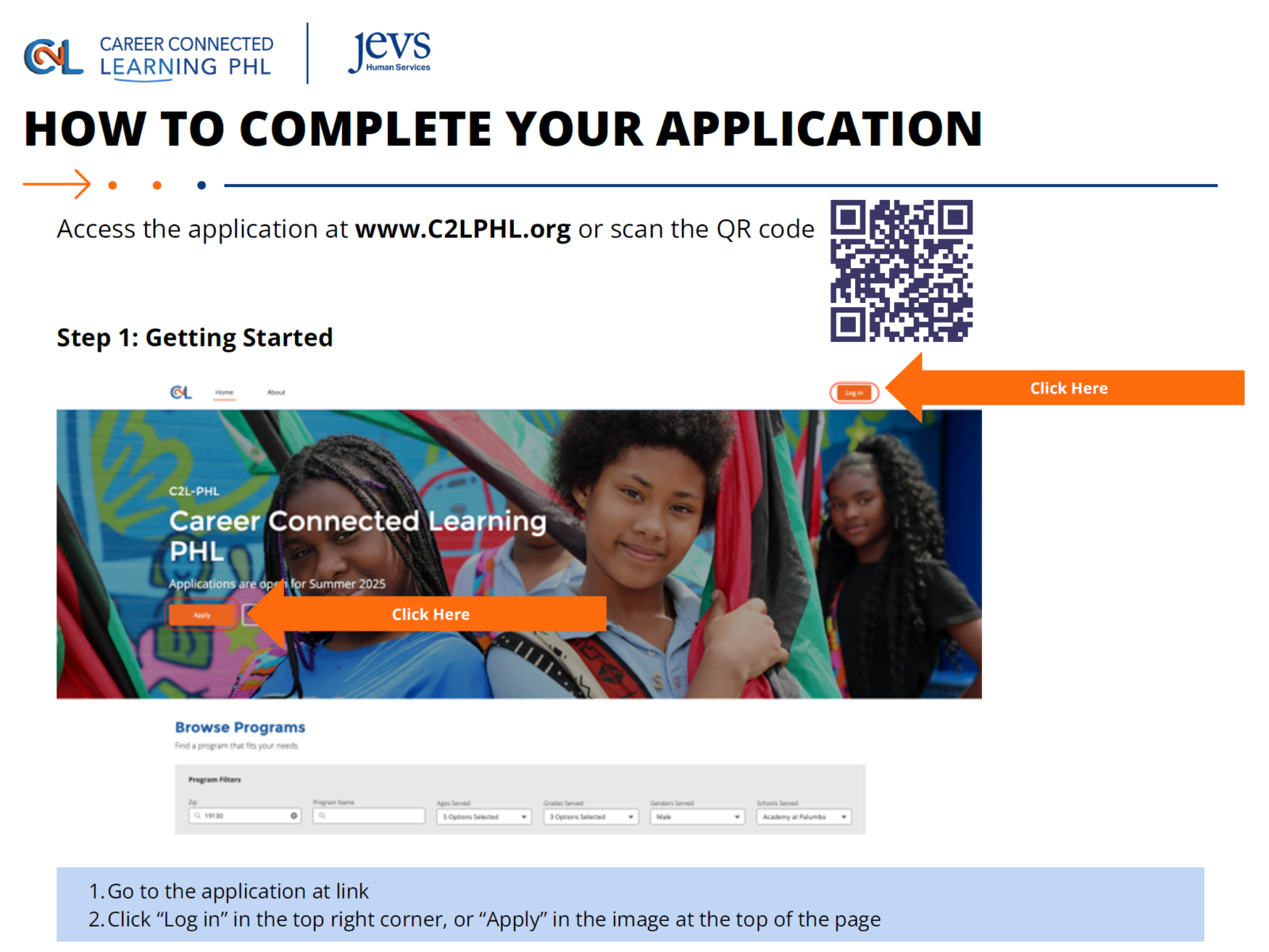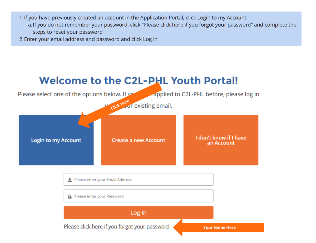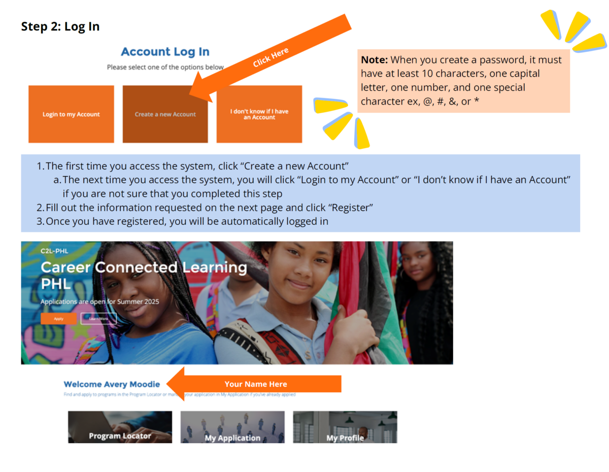 If you participated in C2L-PHL programming during Summer 2025, Fall 2025, or Spring 2026, use the same username. This will link your applications.