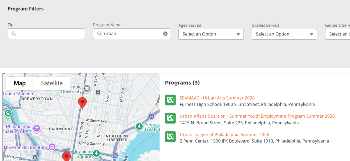 This program is listed under Urban Affairs Coalition-Summer Youth Employment Program on the Program Locator.